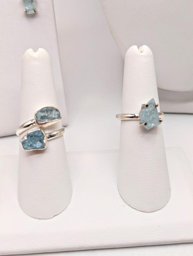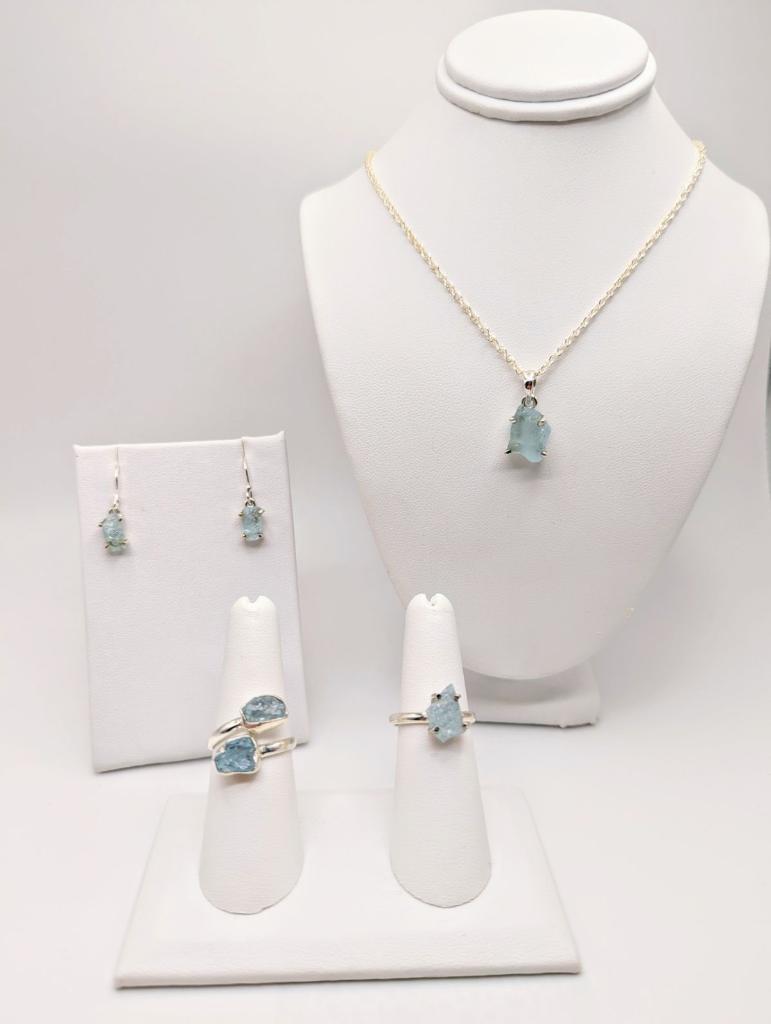 Gorgeous rough cut Aquamarines from Colorado's Mt. Antero, set in sterling silver jewelry