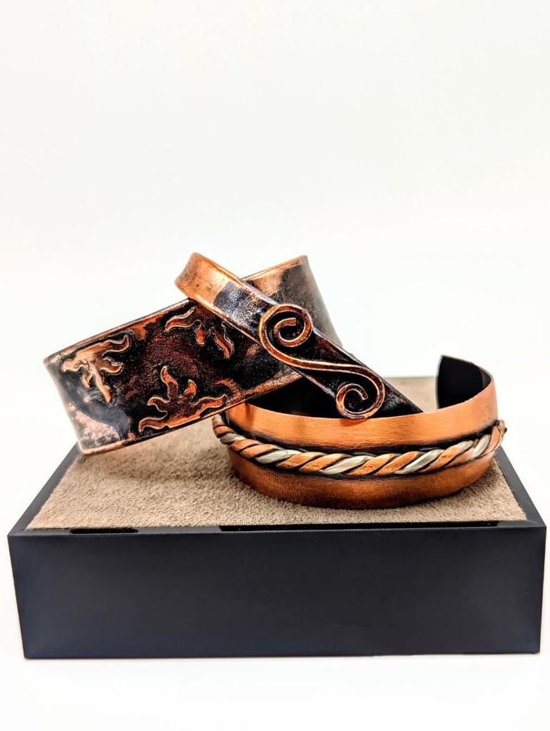 Colorado artisan producing beautiful copper bangles and pendant jewelry.