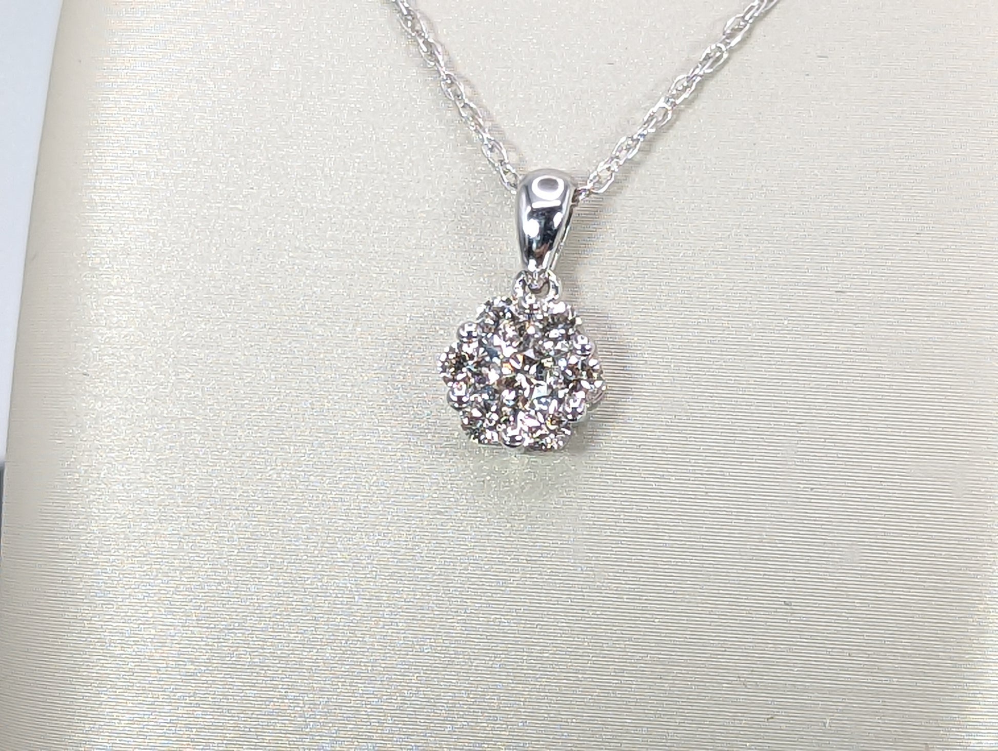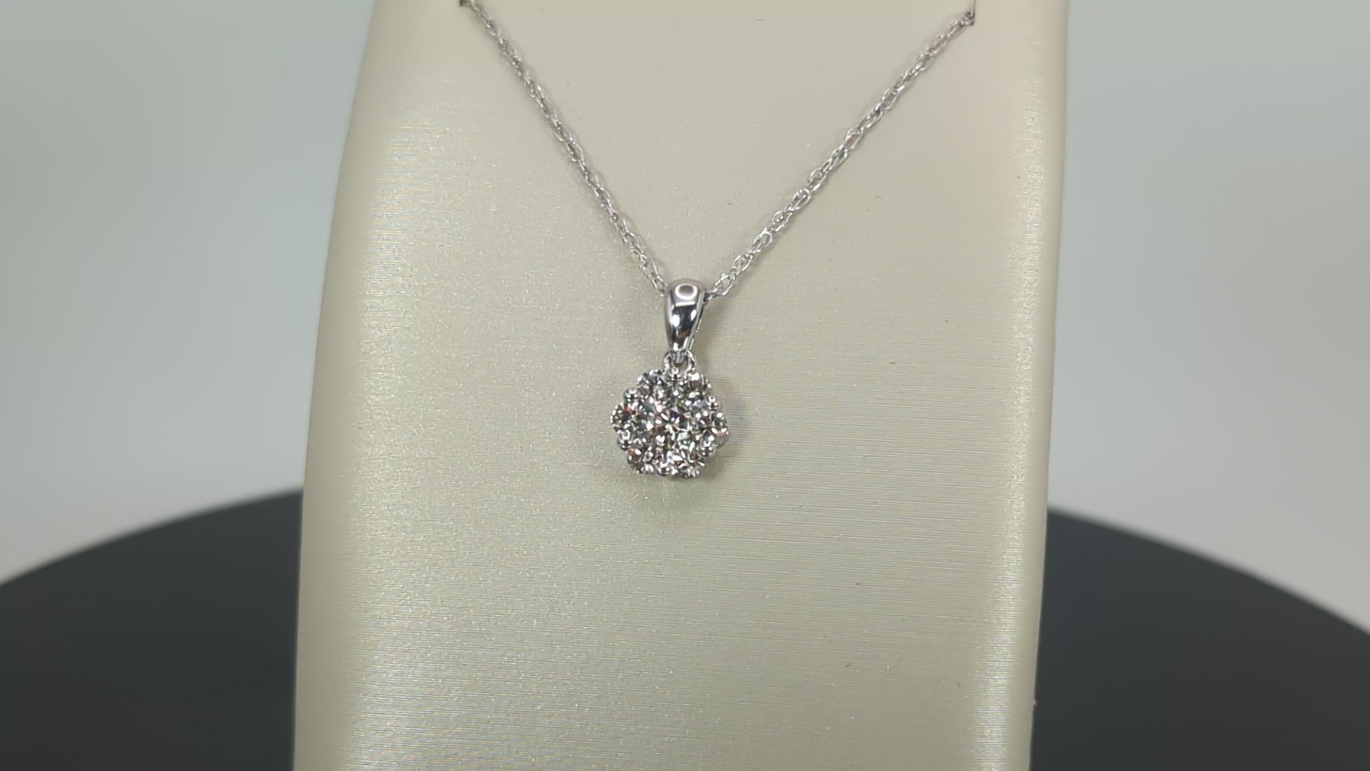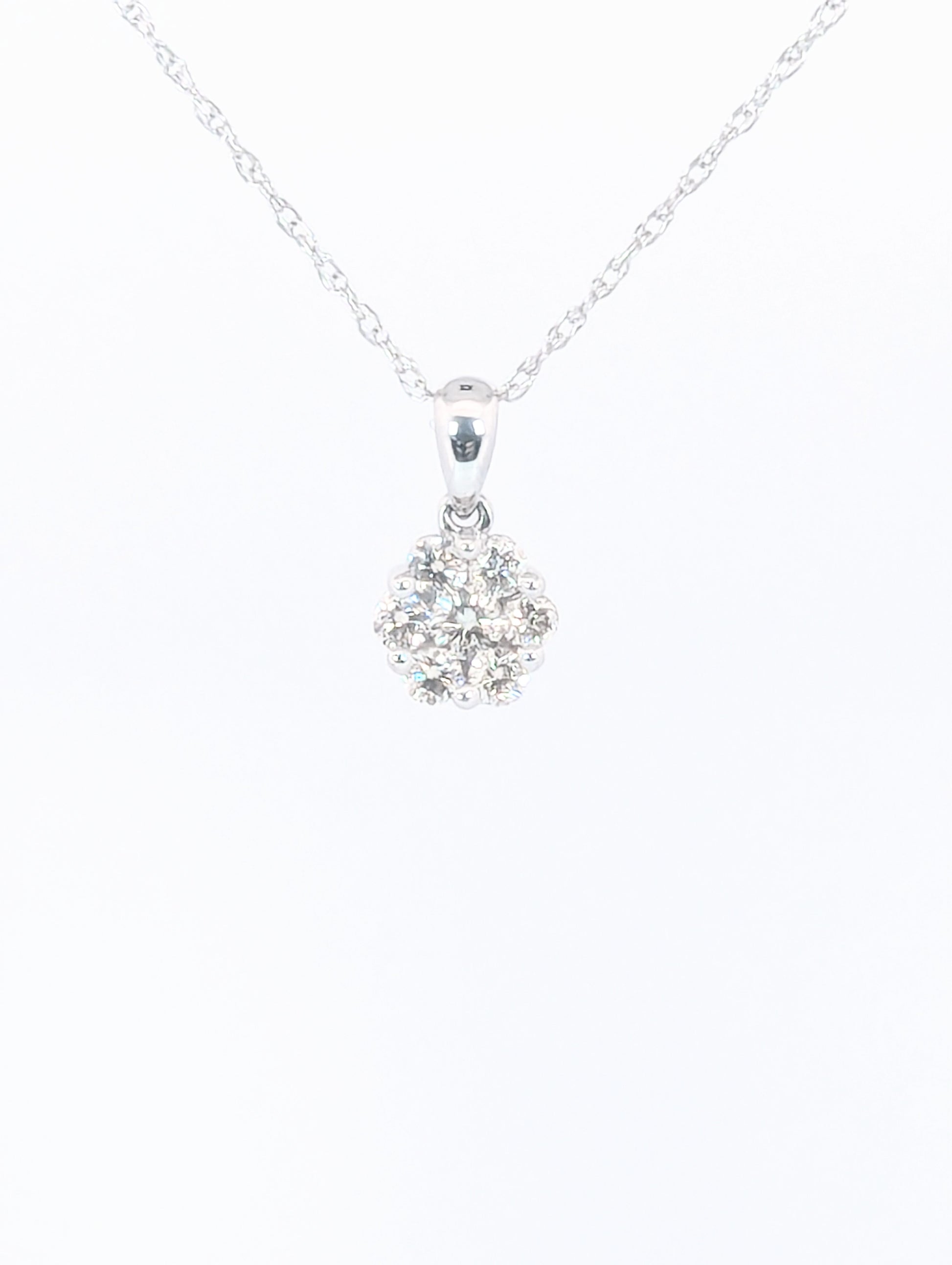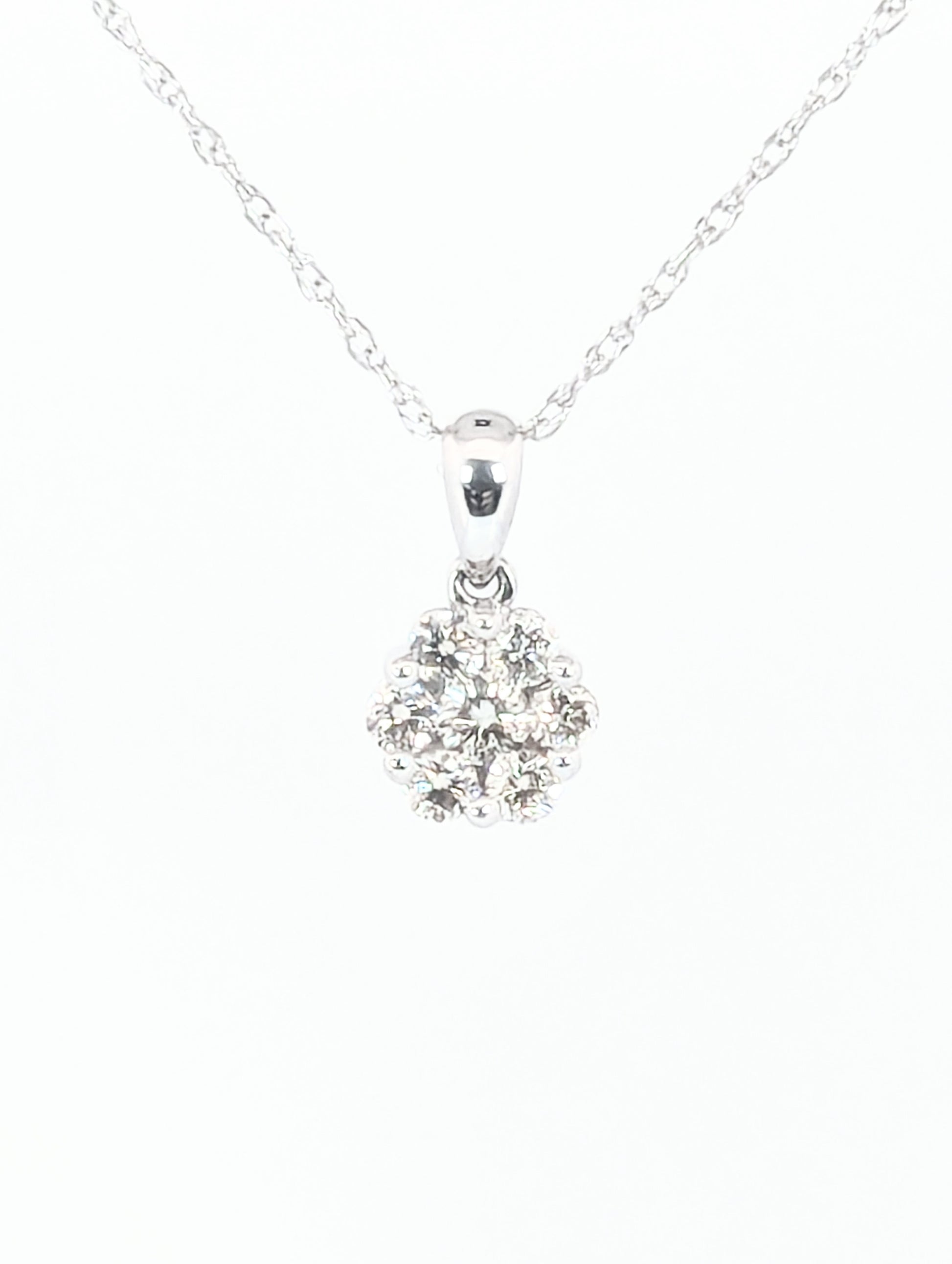 Exquisite 0.5 carat total weight diamond cluster pendant, meticulously set on a lustrous 14K white gold base. A timeless piece that radiates elegance and sophistication.