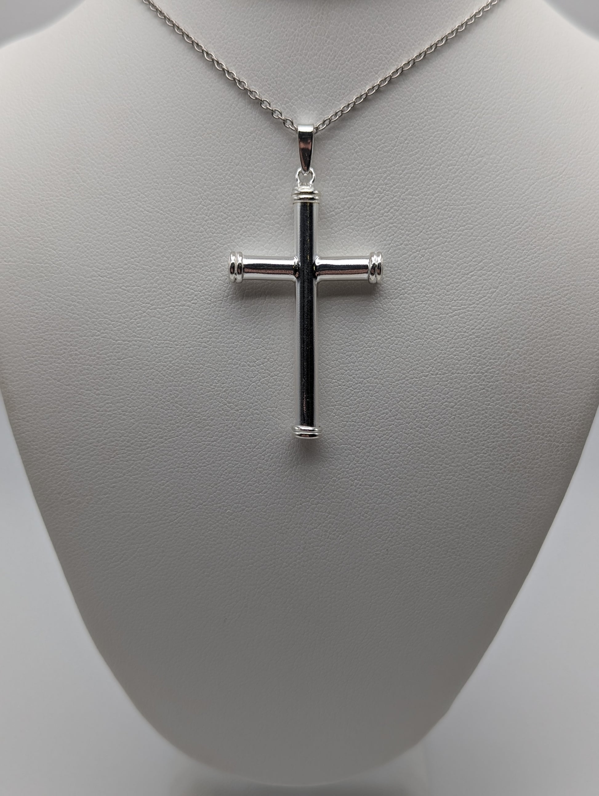 Discover elegance and faith intertwined in our Sterling Silver Cross, a timeless symbol of devotion and grace. This exquisite piece is crafted from premium sterling silver, renowned for its durability and luster. To enhance its beauty and longevity, the cross is meticulously plated with rhodium, giving it a sleek, shiny finish that resists tarnishing and maintains its radiance over time.