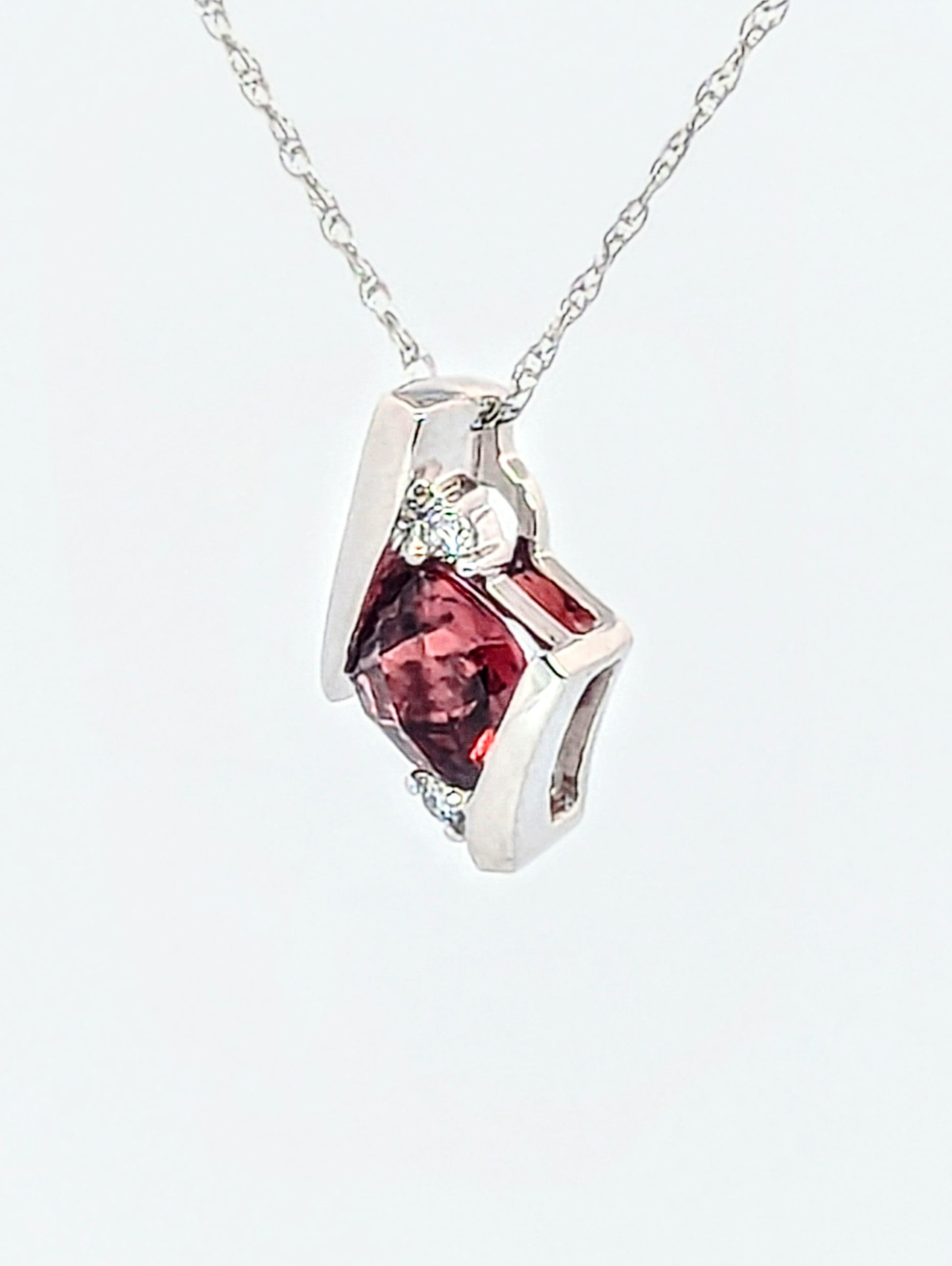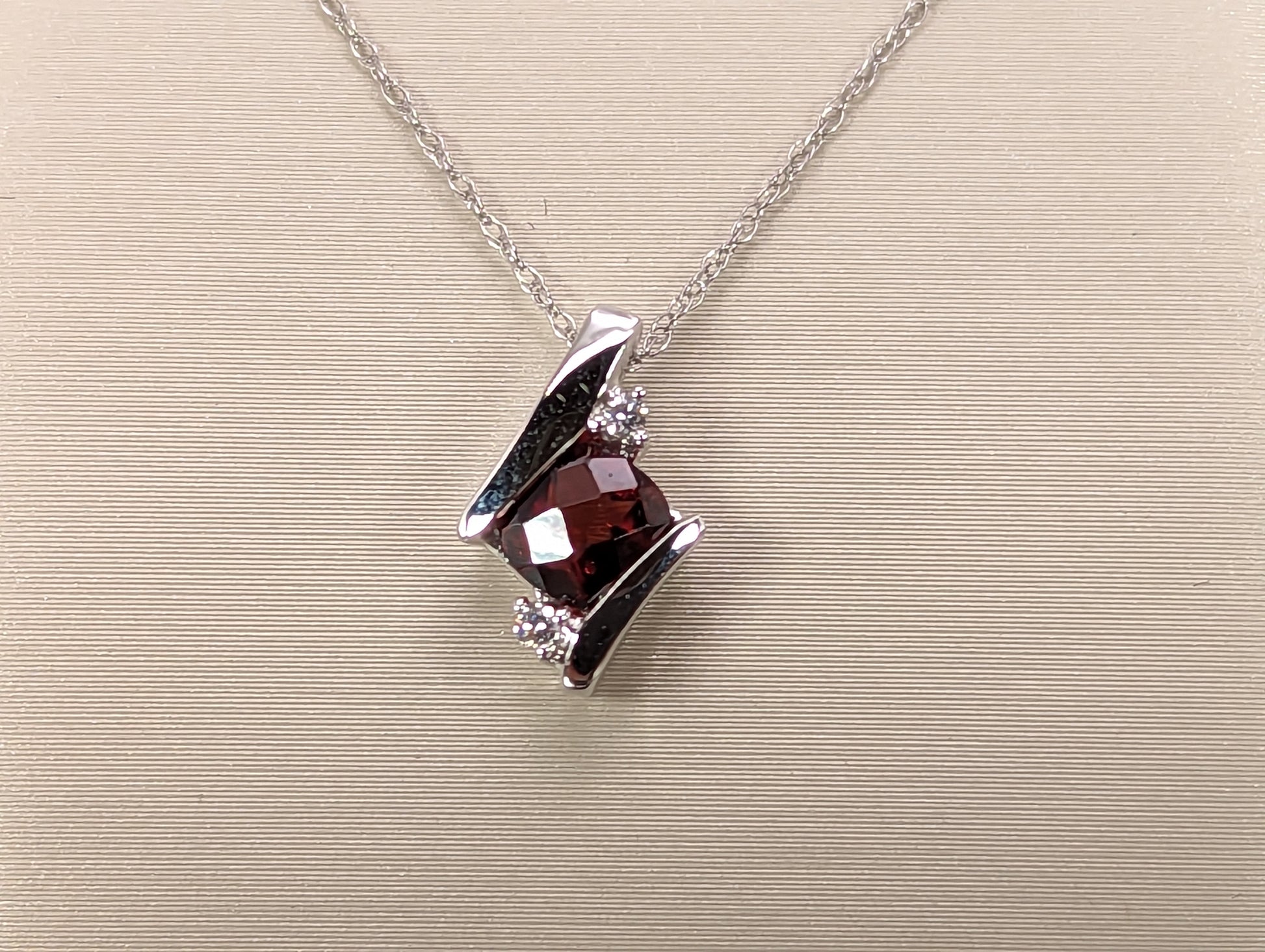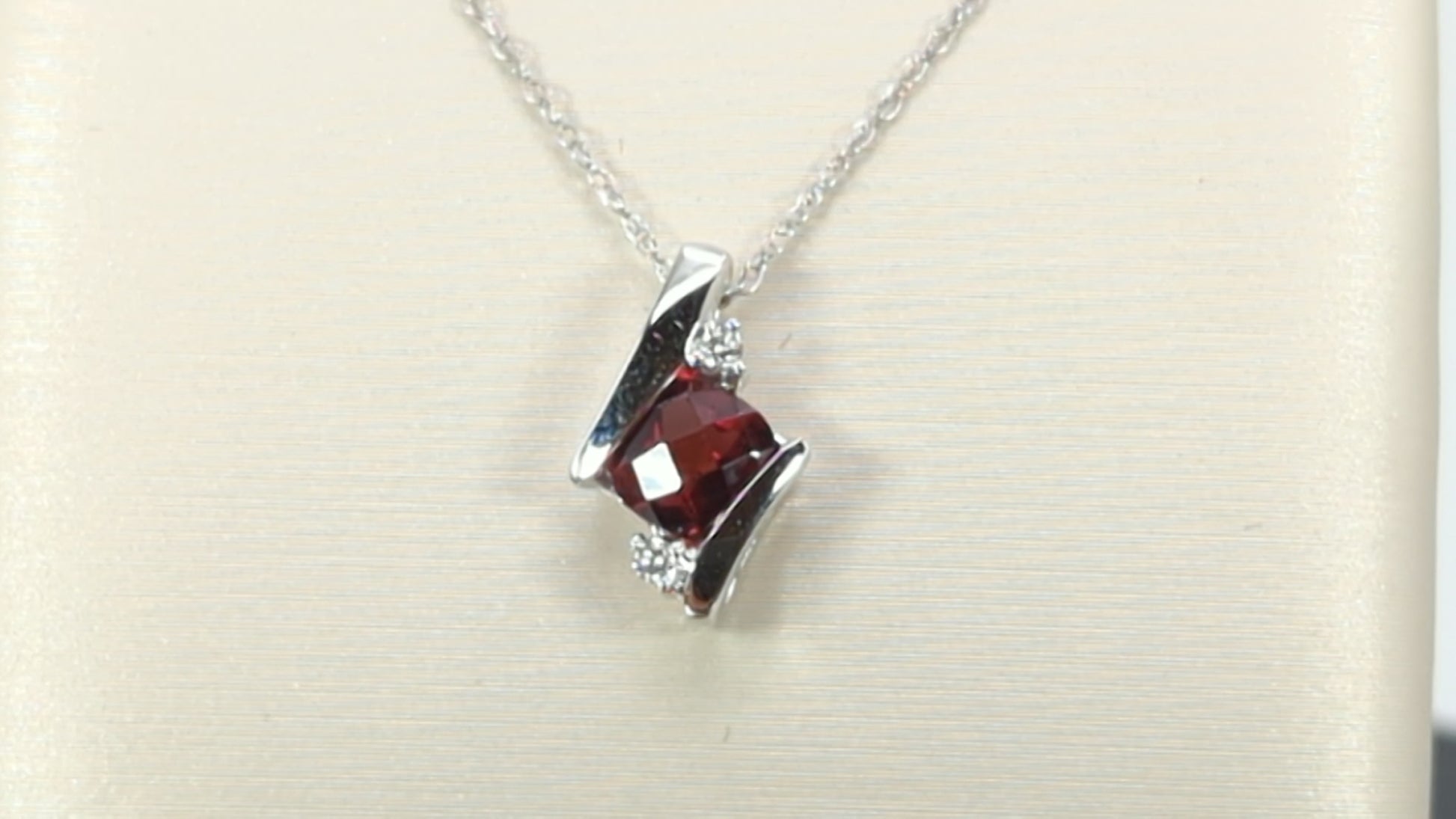 This deep red garnet and diamond white gold pendant can be purchased as a standalone piece or as a set with matching earrings. This matching white gold chain has a 2" extender allowing you the flexibility of two different lengths for a style as put together as you!