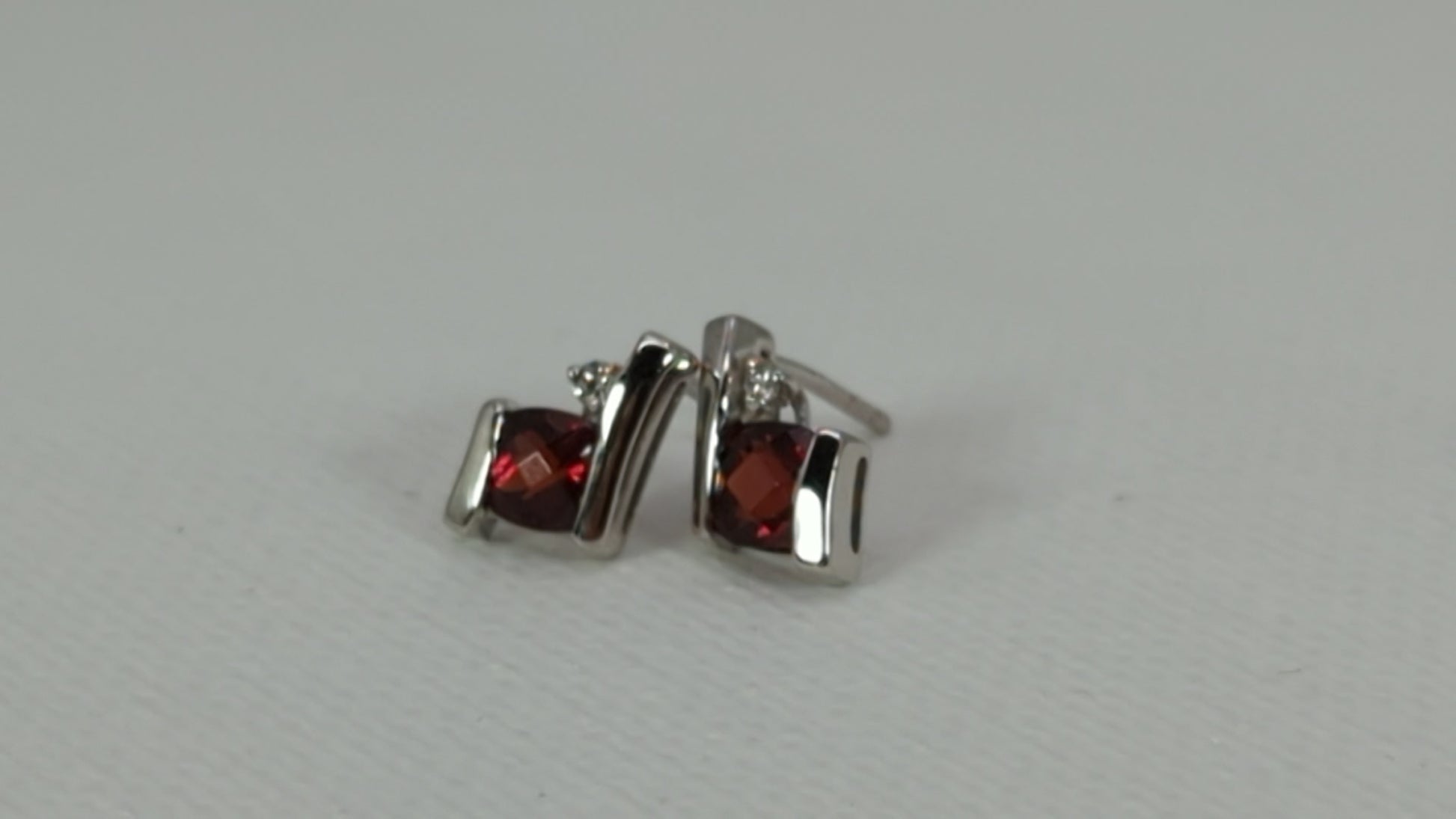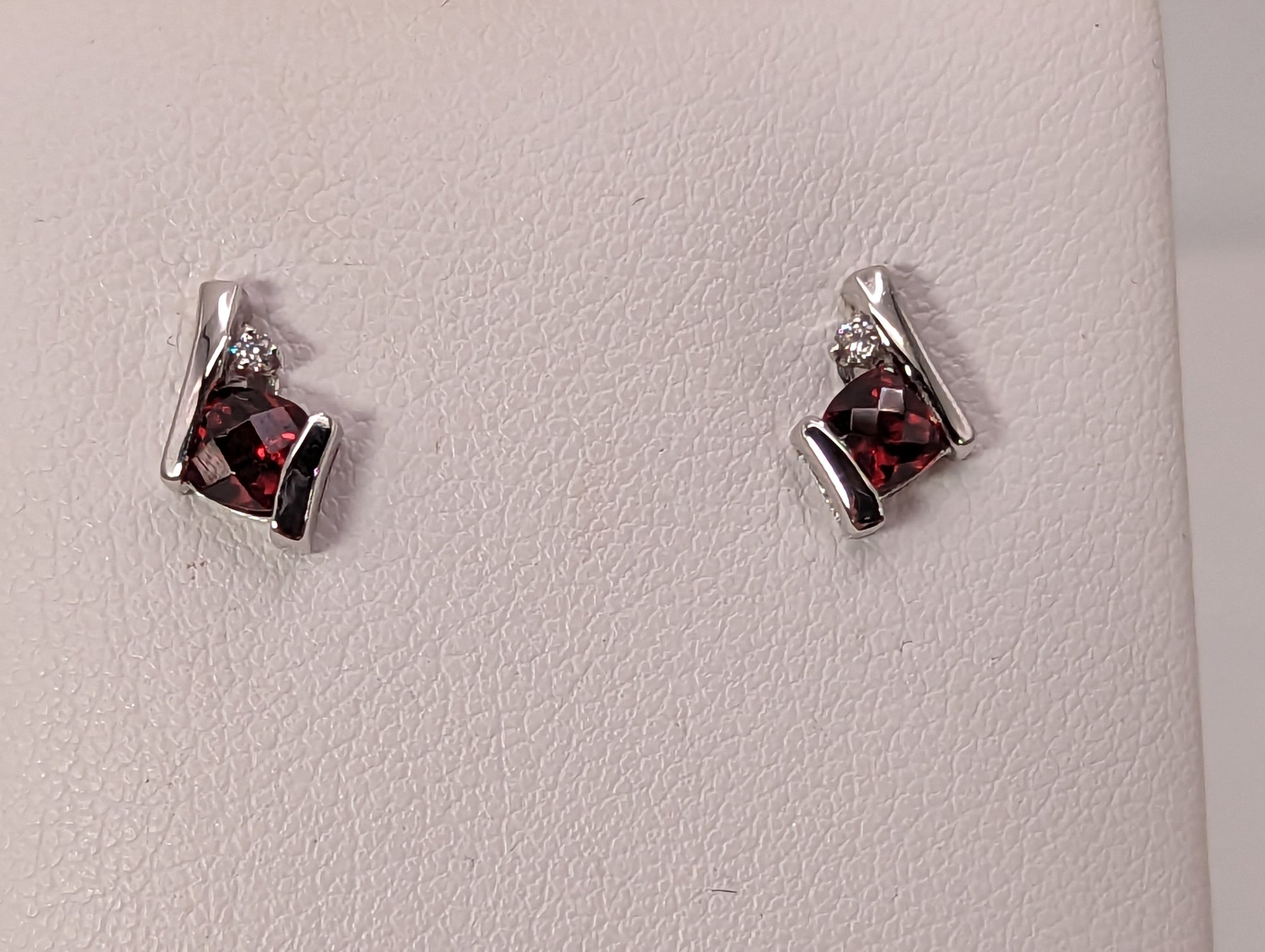 These modern and elegant Red Garnet and Diamond 10K white gold earrings look even better in person!